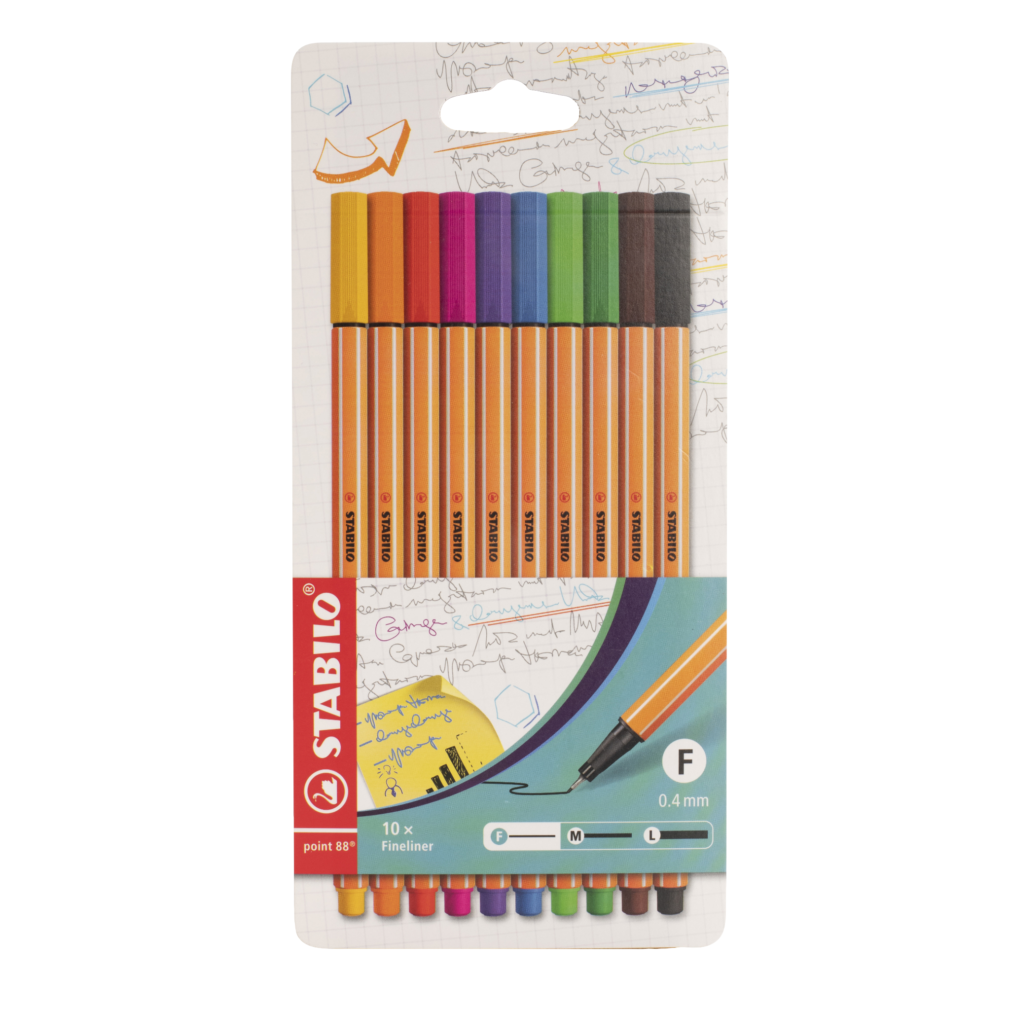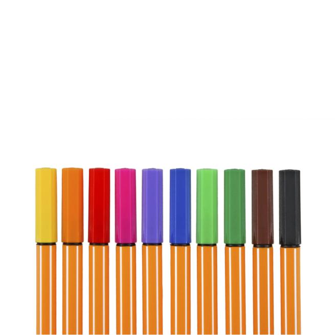 Unterstreichen Sie Ihren persönlichen Stil. Mit den Stabilo Finelinern setzen Sie in Heften, Schriften und Notizen farbige Akzente. Ideal für feines Schreiben, Zeichnen und Kolorieren. Im praktischen Etui stehen Ihnen 10 Stabilo Fineliner mit einer Strichstärke von 0,4 mm zur Verfügung. Das Set enthält Fineliner in den Farben Gelb, Orange, Rot, Pink, Lila, Blau, Hellgrün, Dunkelgrün, Braun, Schwarz.