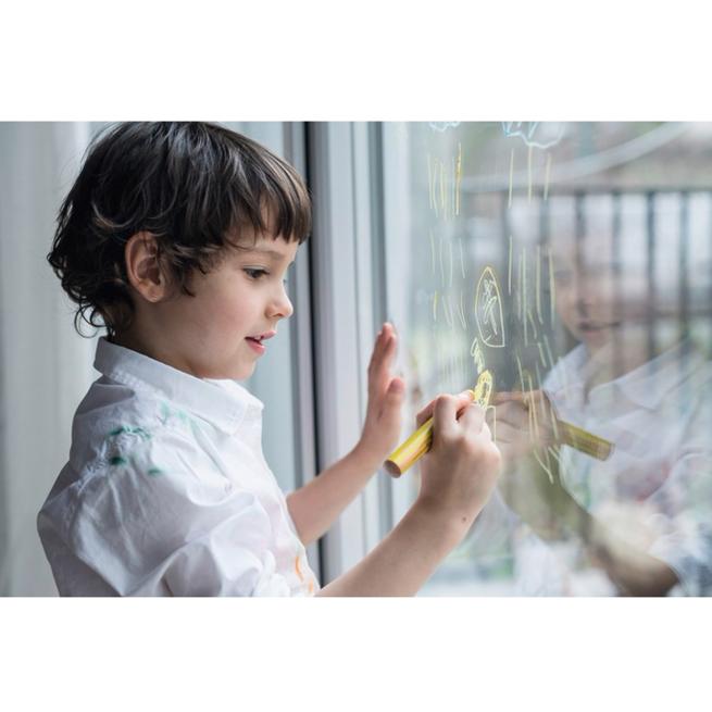 • haftet auch auf glatten Oberflächen wie Glas, Metall, Leder, Tafeln, etc.