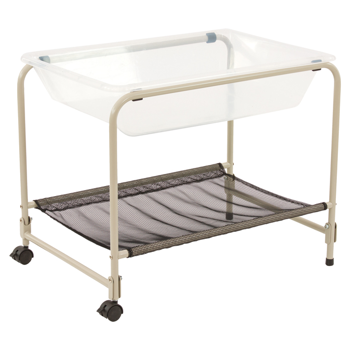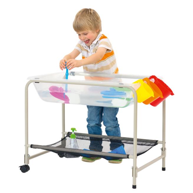 Flexibler Arbeitsplatz für kleine Forscher. Ob drinnen oder draußen – mit dem stabilen Ständerwerk aus Metall wird die Multiwanne zur multifunktionellen Projektstation. Die beiden feststellbaren Rollen sorgen für den sicheren Stand. Besonders praktisch: Der Ständer lässt sich einfach zusammenklappen und das wasserdurchlässige Nylonnetz dient als Ablage für sämtliche Materialien. Inklusive Aufbauanleitung. Ab 3 Jahren.