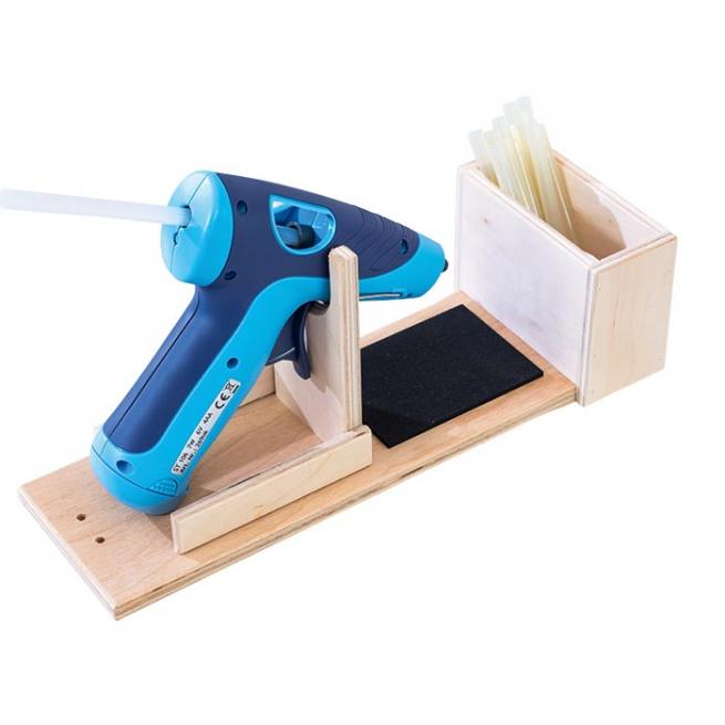 Die ideale Aufbewahrung für alle gängigen Heißklebepistolen.