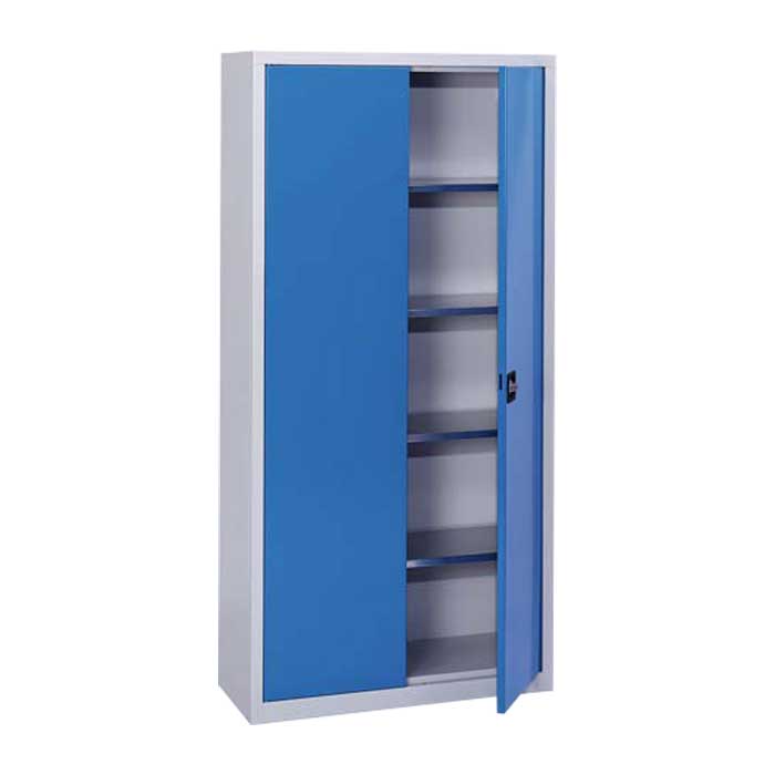 Beim Verschließen fahren zusätzliche Sicherheitsbolzen aus. So sind die verschlossenen Türen durch mehrfache Verriegelung perfekt gesichert. Der Korpus der Stahlschränke ist Lichtgrau. Die Farbe der Türen wählen Sie bitte aus der Tabelle.