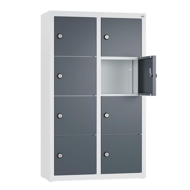 • wahlweise mit 8 oder 12 Fächern für unterschiedliche Organisationsbedarfe• raumsparende Schranklösung mit nur 20 cm Tiefe