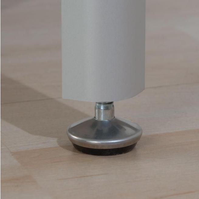 Die Füße haben Stellschrauben zum Ausgleich von Bodenunebenheiten. Sie erhalten die Vitrine komplett aufgebaut. Nur noch die Böden legen Sie einfach ein.