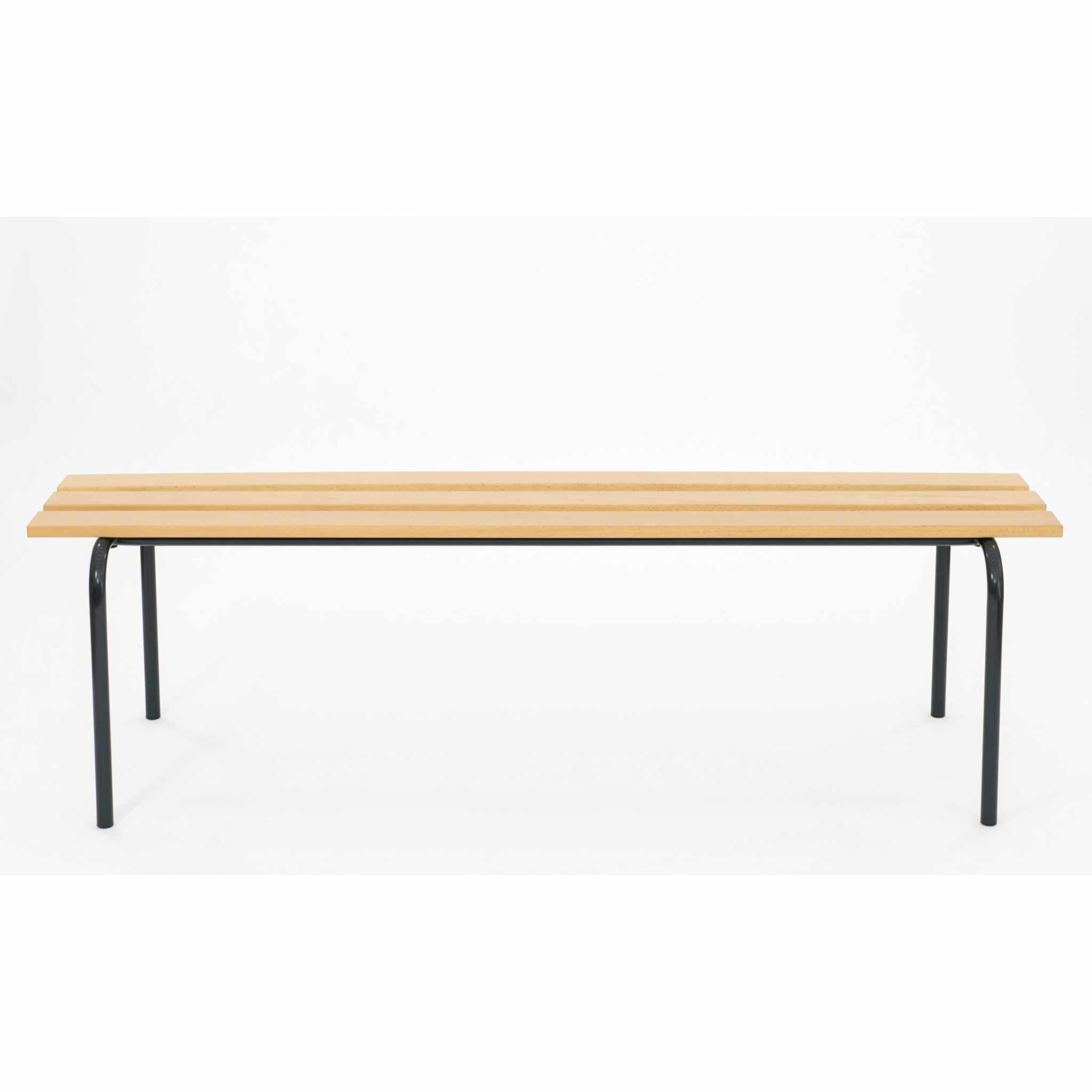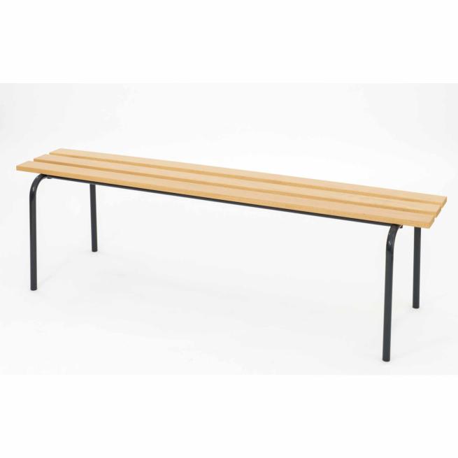 Die optimalen Bänke in Ihrer Sporthalle! Die komfortable Sitzfläche aus Buche-Massivholzleisten ist klar lackiert. Das robuste Rundrohr-Stahlgestell (Ø 25 mm) ist schwarz-grau lackiert, pulverbeschichtet und mit abriebfesten Bodengleitern ausgestattet.
