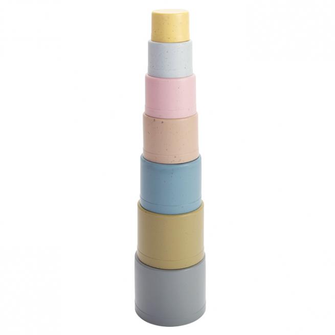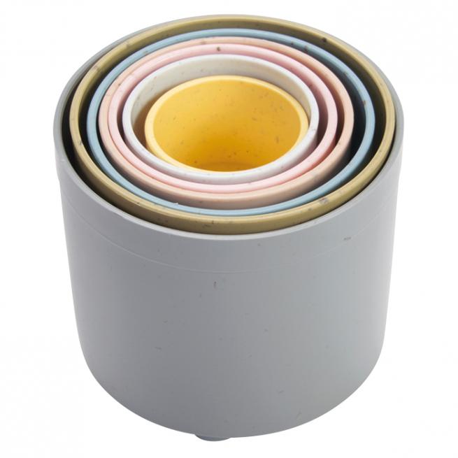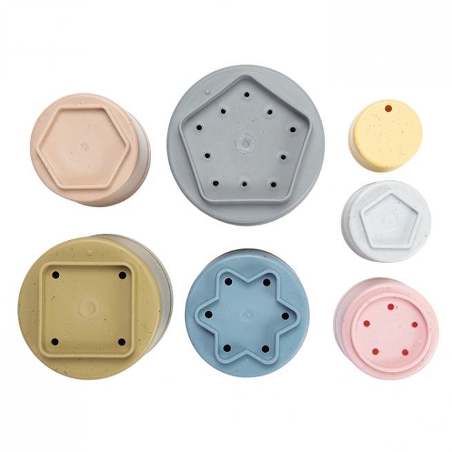Vielseitige Spielmöglichkeiten für die Allerkleinsten bieten die 7 Stapelbecher in unterschiedlichen Farben und Größen. Ob Greifen, Stapeln, Sortieren, Formen auf der Unterseite entdecken oder Wasser durch die Löcher einiger Becher fließen lassen – Matschtische, Sandkästen und Planschbecken werden zu Experimentierstätten. Bestimmt entdecken die Kinder auf der Unterseite der Stapelbecher die geometrischen Formen und zaubern verschiedenste Abdrücke in Knete und Sand. Altersempfehlung: ab 6 Monaten