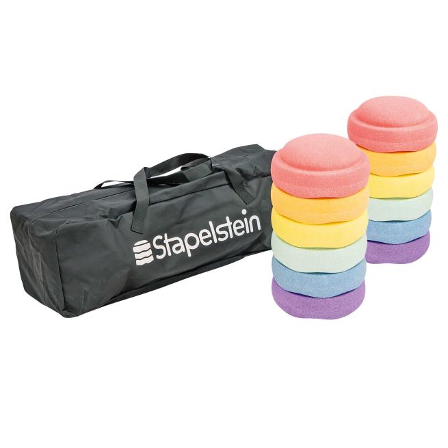Absolut praktisch für Ihre Einrichtung. Ob in den Farben rainbow classic, rainbow pastel oder gemischt – die Elemente von Stapelstein® nutzen Ihre Kinder zum Balancieren, Klettern, Forschen und Spielen. Eine tolle Motivation zum Bewegen und fürs dynamische Sitzen bzw. den Gleichgewichtssinn. Alle 12 Elemente passen in die geräumige Tasche, die Sie tragen, umhängen oder als Rucksack nutzen können. Das wasserfeste Material ist ungiftig, abriebfest und zu 100 % recycelbar.