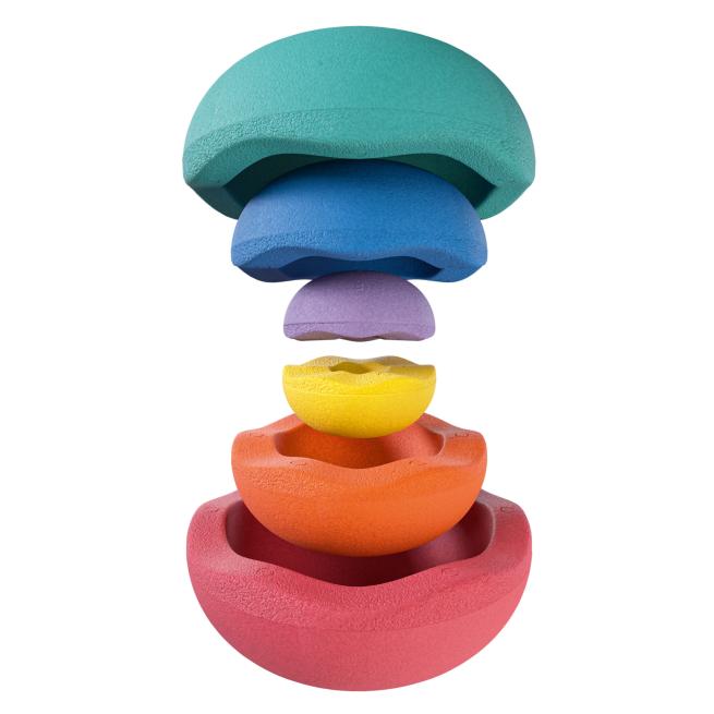 Das Set Inside rainbow pastel besteht aus 6 ineinander stapelbaren Elementen in den sanften Farben light red, light orange, light yellow, mint, light blue und violet.