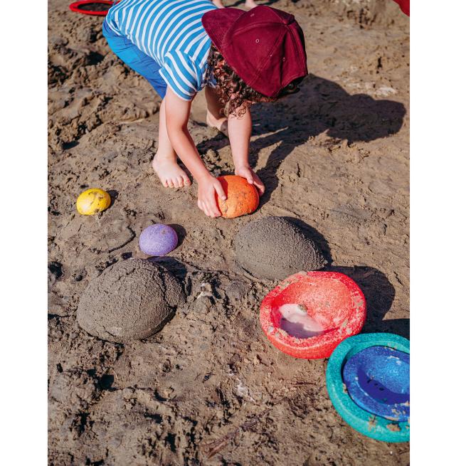 Ob drinnen oder draußen, mit den einzelnen Elementen ergeben sich unzählige Spielmöglichkeiten. Wer mag, stapelt sie z. B. in- oder aufeinander oder sortiert sie nach Farbabstufung oder stapelt maximal 3 Elemente, um darauf zu balancieren. Das komplette 6er-Set passt übrigens in 2 Originals (nicht enthalten).