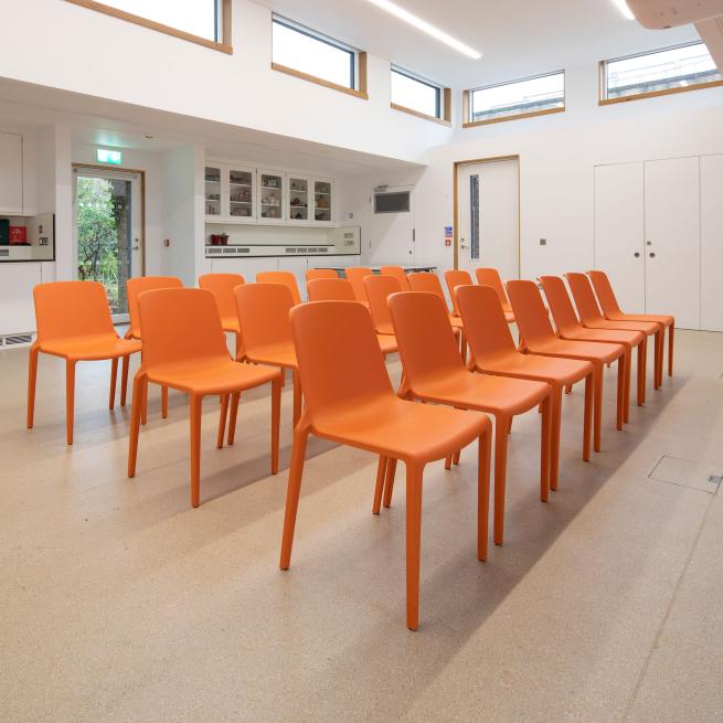 Solide und elegant – der Stapelstuhl Hatton ist vielseitig einsetzbar. Ob in der Bibliothek oder in der Mensa – dieser Stuhl lädt immer zum gemütlichen Sitzen ein. Dabei ist er einfach zu reinigen und sehr langlebig. Die geschwungene Rückenlehne dient gleichzeitig als Griff, mit dem Sie den Stuhl leicht bewegen können. Er ist in 7 Farben erhältlich, besteht aus stabilem Polypropylen sowie Glasfaser-Gemisch und ist zu 100 % recycelbar.