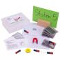 An 7 verschiedenen Stationen kann die ganze Klasse gleichzeitig arbeiten. Dabei halten die Schüler auf den Arbeitsblättern ihre Beobachtungen fest. In der Handreichung sind ausführliche Erläuterungen, Lösungsblätter und weiterführende Infos enthalten. Für das Thema Elektromagnet benötigen Sie noch 2 Batterien AA Mignon und 1 Flachbatterie (Batterien nicht im Lieferumfang enthalten) bis höchstens 4,5 V.