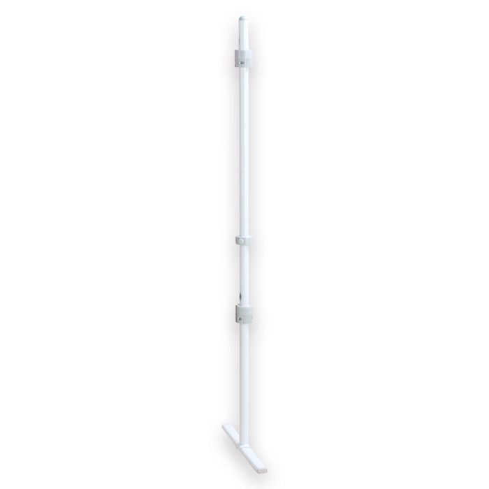 Jedes Stativ hat einen Sicherungsring. Dieser sorgt dafür, dass die Tafeln in der Aufhängung bleiben. Das garantiert Stabilität und Sicherheit. T-Fuß Stative aus robustem Rundrohr. Farbe: Lichtgrau
