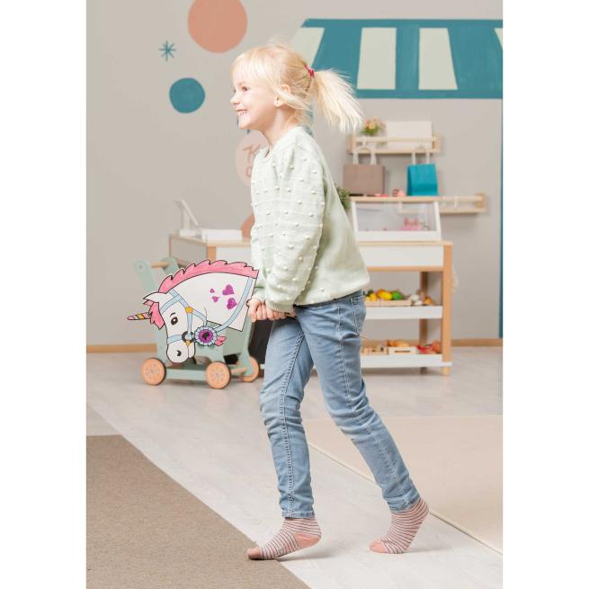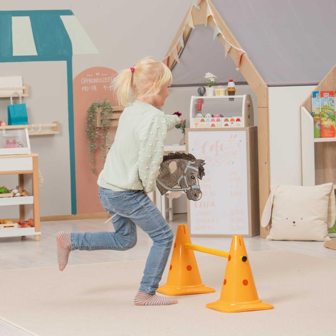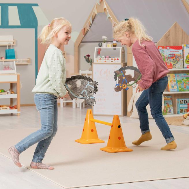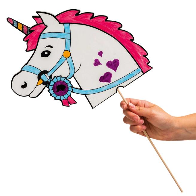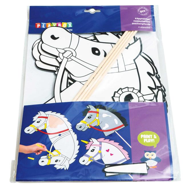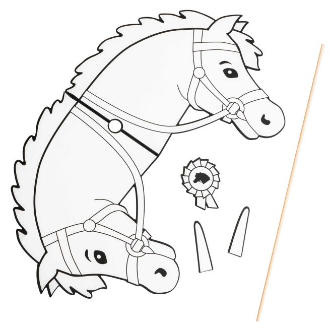 Hinweis: Zum einfachen, individuellen Gestalten bestehen die Pferdchen aus Karton, daher sind sie weniger robust als Steckenpferde aus Holz oder Stoff.