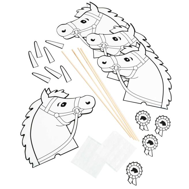 Aus den 4 weißen, doppelseitigen Vorlagen gestalten Kinder mit Fantasie, Malfarben und Verzierungsmaterial (bitte separat bestellen) ihr liebstes Pferd oder Einhorn. Wer wohl beim nächsten Wettrennen ein Siegerschleifchen verliehen bekommt?