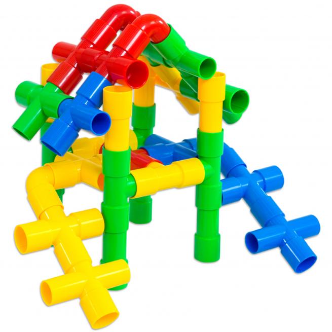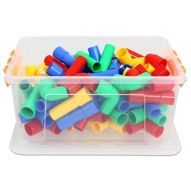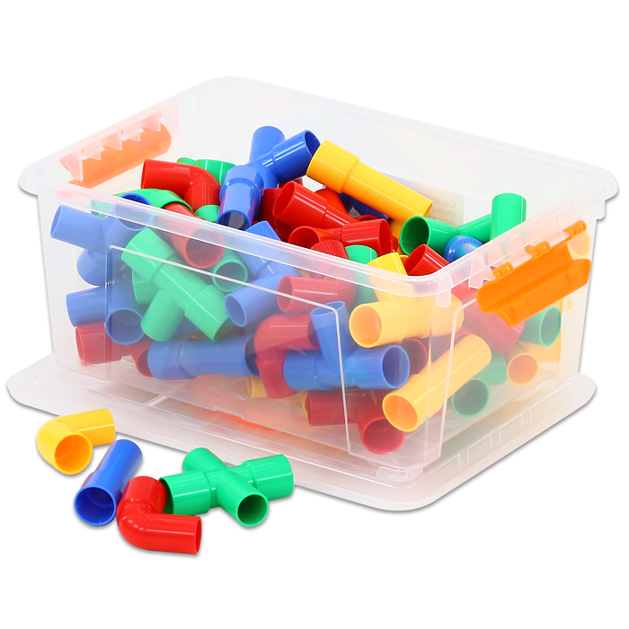 Fantastische Formen und Gebilde bauen Ihre Kinder mit dem Steckrohre-Bausatz. Die farbenfrohen geknickten und geraden Rohre stecken sie einfach zusammen. Dabei trainieren die Kinder gleichzeitig ihre Farbwahrnehmung, die Vorstellungskraft und ihre Feinmotorik. Auch das Aufräumen fällt ihnen dank praktischer Aufbewahrungsbox mit Deckel besonders leicht.