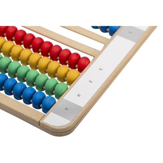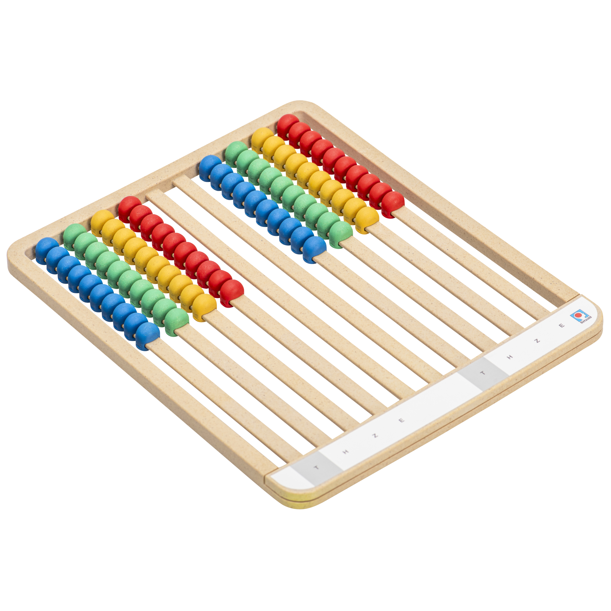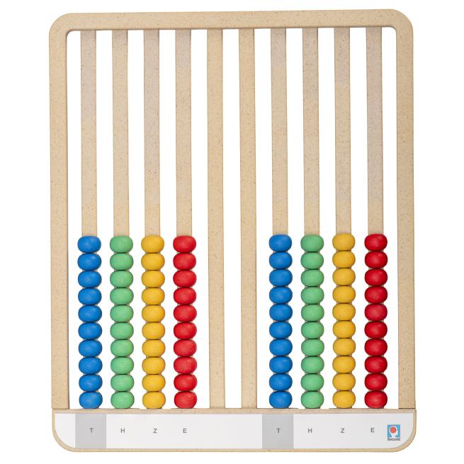 1- bis 4-stellige Zahlen farbcodiert darstellen, addieren, subtrahieren oder miteinander vergleichen – dank insgesamt 8 Reihen mit Rechenperlen (je 2x 1er in Rot, 10er in Gelb, 100er in Grün und 1000er in Blau). Ein seitlicher Streifen samt Buchstabenkürzeln dient zur Übersicht über die Werte der einzelnen Perlenreihen: T für Tausender, H für Hunderter, Z für Zehner und E für Einer. Rechenrahmen und Rechenperlen aus umweltfreundlichem treeNside-Material, robust und trotzdem leicht.