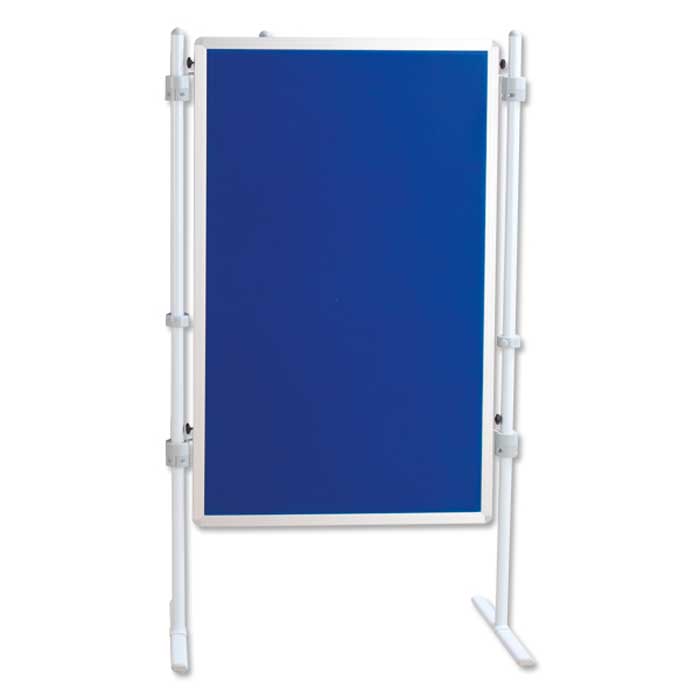 Klettmaterial haftet an dem Flanell. Bilder werden mit Pinn-Nadeln schnell und einfach angebracht. Die Tafeln sind doppelseitig zu verwenden und können hoch oder quer eingehängt werden. Die Stative haben einen zusätzlichen Sicherheitsring. Dieser sorgt dafür, dass die Tafeln in der Aufhängung bleiben. Das sorgt für Stabilität und Sicherheit.