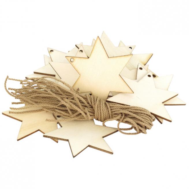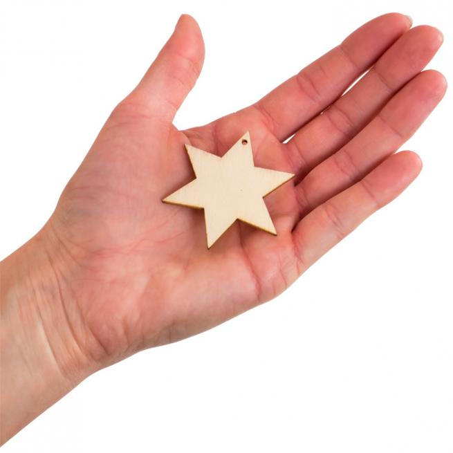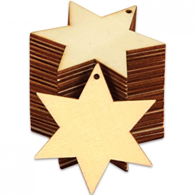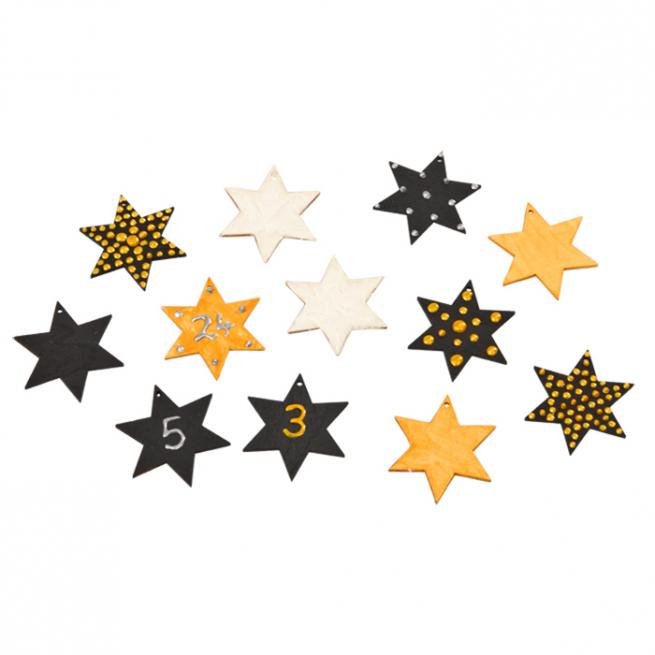 Weihnachtliche Deko oder Geschenkanhänger, die 24 Blanko-Stern-Holzrohlinge gestalten Sie mit Ihren Kindern und ein bisschen Fantasie einfach selbst.