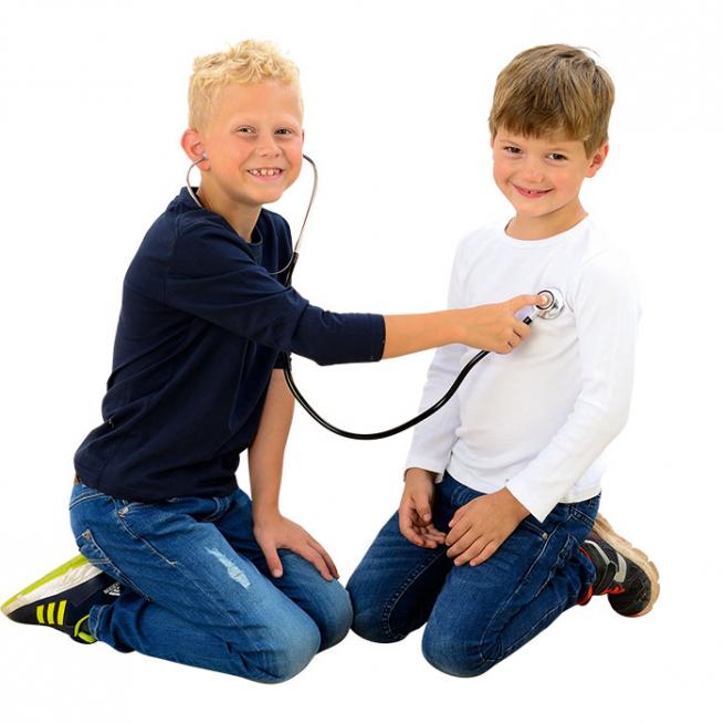 Nicht nur für angehende Ärzte. Die Kinder hören ihre eigenen Herztöne ab. Extrarobuste Ausführung, um dem Gebrauch von Kindern standzuhalten. Kein Medizinprodukt, nur zum Spielen geeignet. Stethoskop mit Ohroliven, Bruststück, Membran, Metallbügel und Gabelschlauch. Ab drei Jahren.