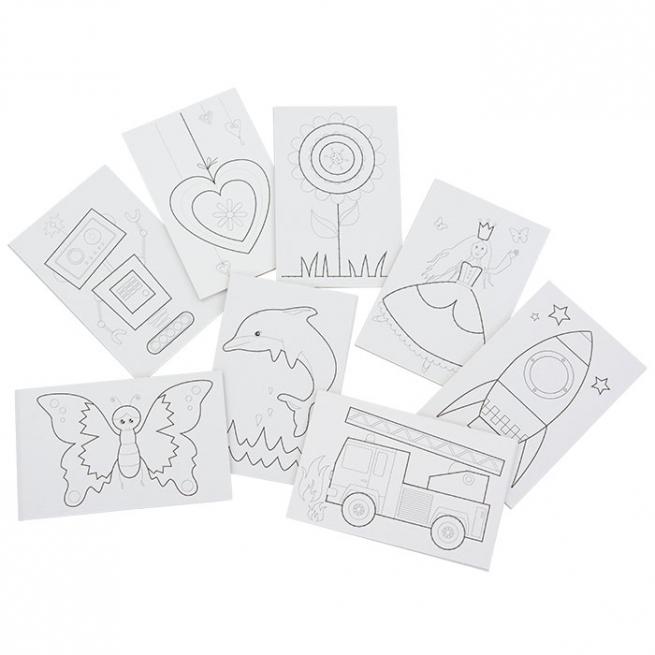 Wählen Sie zwischen 48 weißen oder 50 bunten Karten mit jeweils 8 verschiedenen Motiven und vorgestanzten Löchern.