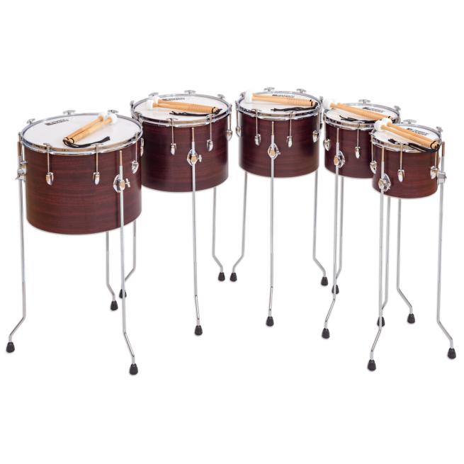 Sie erhalten langlebige Instrumente mit durchdachten Funktionen: Das robuste Kunststofffell sorgt für gleich bleibende Tonqualität. Die Zugspannung des Fells variieren Sie einfach und exakt mit 6 Stimmschrauben. Die Schrauben kommen ohne separate Schlüssel aus. Der Spieler stimmt das Instrument, indem er die Schlüsselköpfe von Hand dreht. So lassen sich die Pauken auch tonal spielen. Mit höhenverstellbaren Standbeinen passen Sie die Spielhöhe für jedes Kind optimal an. Der nach außen verbreiterte Stand sorgt für perfekte Stabilität beim Musizieren. Die Schüler-Pauken eignen sich ideal als Grundausstattung für Ihre Schule auch bei kleinem Budget.