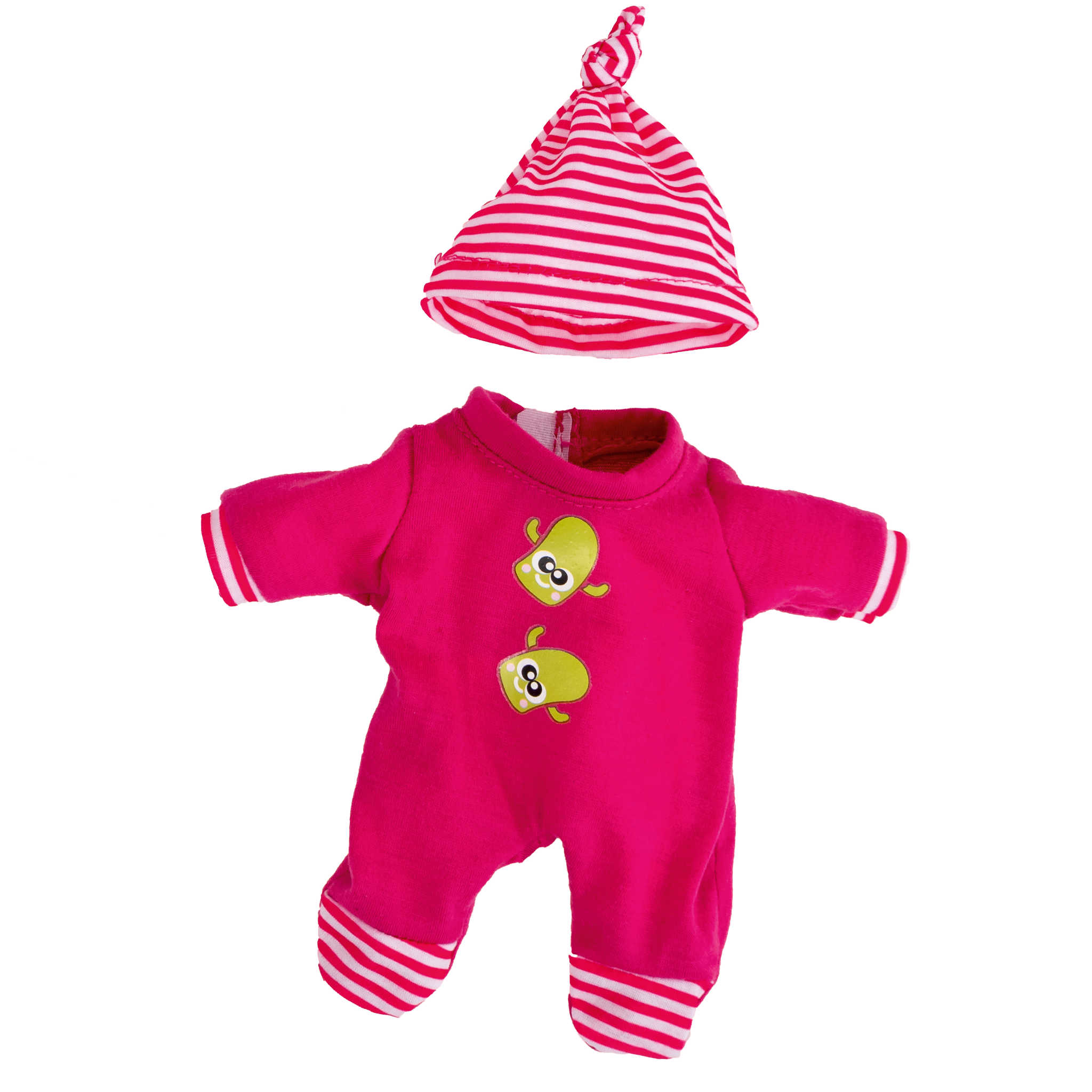Mit diesem süßen Strampler aus angenehm weichem Stoff sind Puppen mit einer Größe von 21 cm bestens angezogen. Der praktische Klettverschluss ermöglicht ein unkompliziertes An- und Ausziehen. Die passende Mütze hält den Puppenkopf bei kaltem Wetter schön warm.