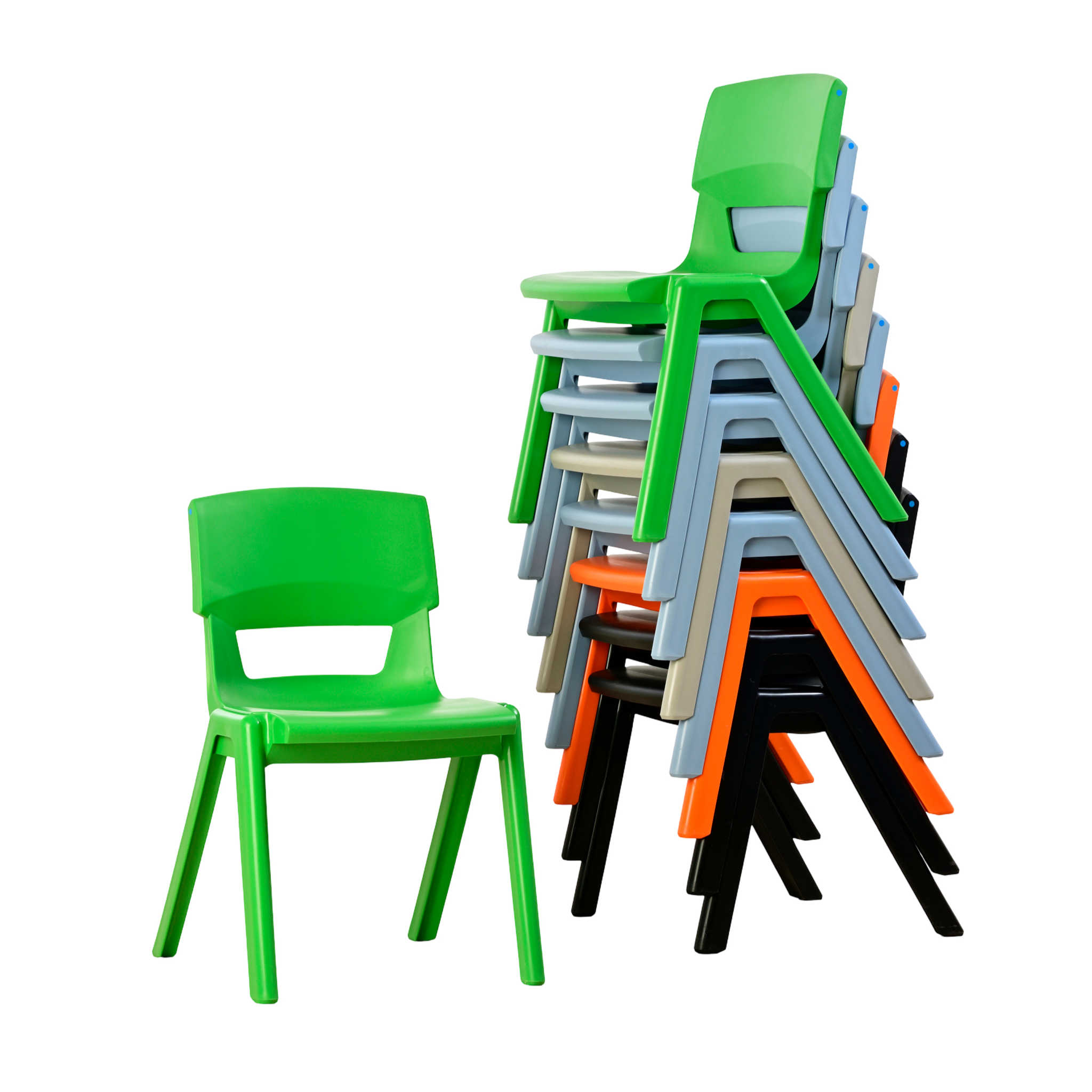 Ob Kindergarten, Schule, Fachraum, Mensa oder Außenbereich – auf dem Postura+ sitzen alle richtig und bequem. Postura+ Stühle kippeln nicht, sind leicht und nahezu unzerstörbar. Dabei sind die Stühle in leuchtenden Farben sowie trendigen Pastelltönen erhältlich, absolut pflegeleicht und hygienisch.