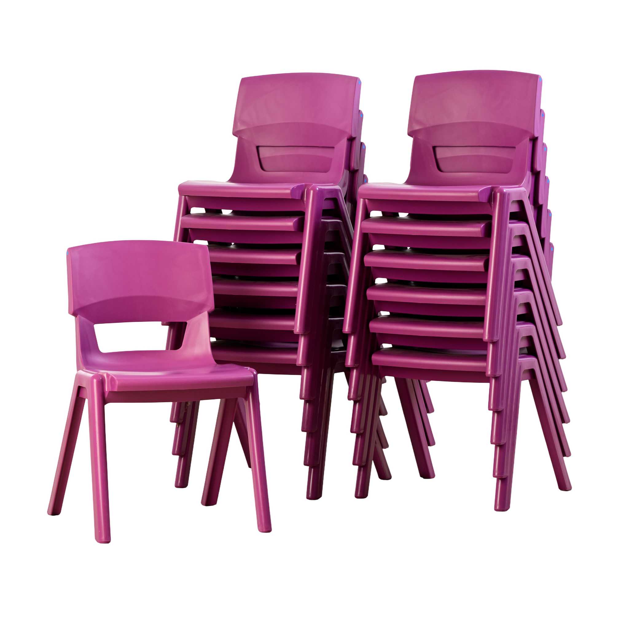 Bis zu 12 Stühle stapeln Sie schnell und einfach übereinander. Mit den optionalen Sitzpolstern (Art. Nr. 62520) und Reihenverbindern (Art. Nr. 45027) werden Postura+ Stühle der Größe 6 (Sitzhöhe: 46 cm) zur preiswerten Großraumbestuhlung. Der Postura+ Stuhl entspricht der DIN EN 1729 (Richtlinie für Möbel, Stühle und Tische an Bildungseinrichtungen).