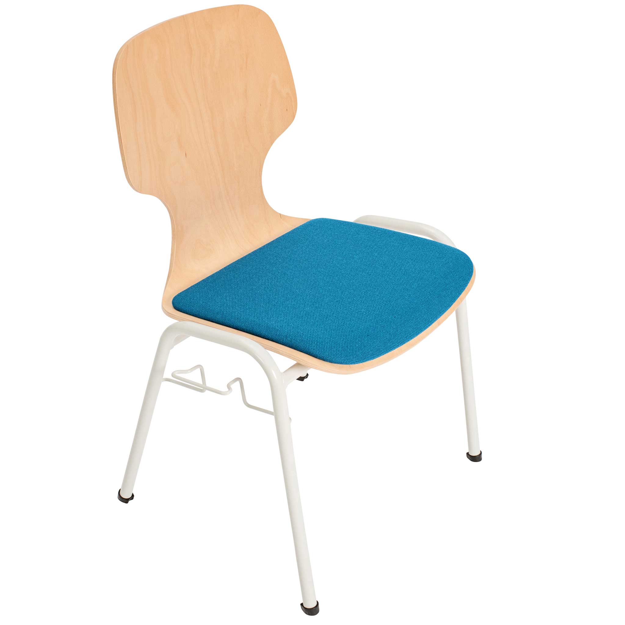 Stuhlgestell aus Präzisionsrundrohr mit formschöner Sitzschale und gerundeten Kanten. Stapelbar bis 10 Stühle. Optional mit Filzgleitern zur Bodenschonung. Belastbar bis 120 kg.