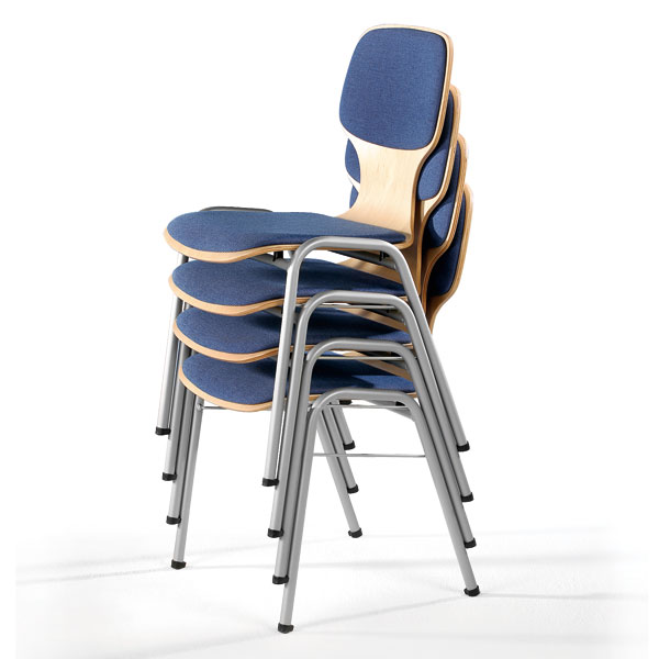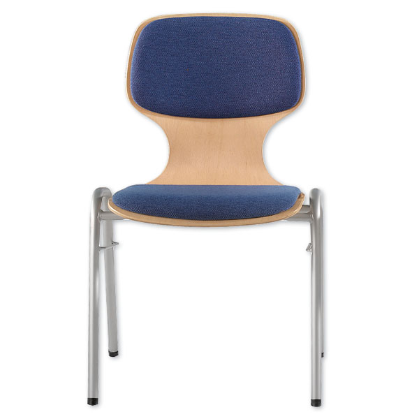 Stuhlgestell aus Präzisionsrundrohr mit formschöner Sitzschale und gerundeten Kanten. Stapelbar bis 10 Stühle. Optional mit Filzgleitern zur Bodenschonung. Belastbar bis 120 kg.