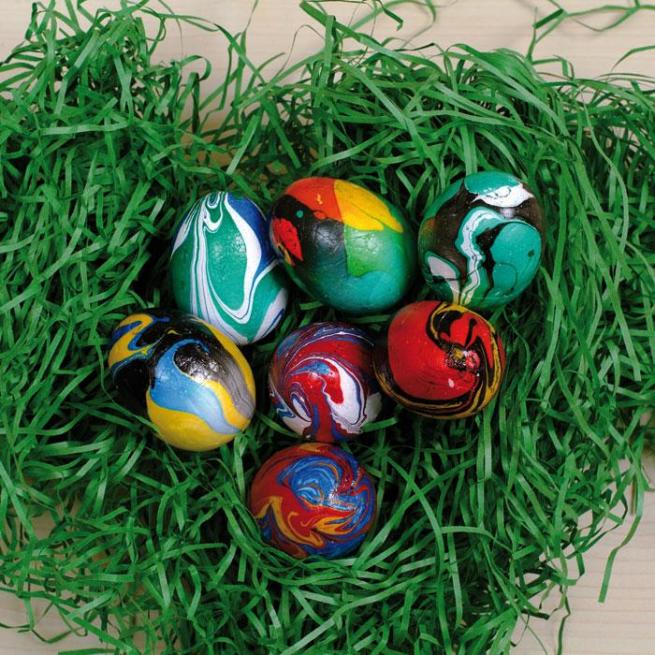 8 Styropor-Eier verwandeln Sie im Handumdrehen in bruchsichere, bunte Ostereier.