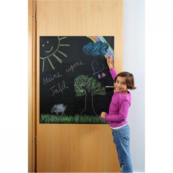 Die geniale Schreib- und Malwand für Türen und Wände. Ob als Infotafel für allerlei Notizen oder als Malfläche für bunte Bilder – einfach die Tafelfolie aufkleben und los gehts! Ob zu Hause oder in der Schule – die selbstklebende Tafel nutzen Sie und Ihre Kinder äußerst vielseitig. Im Nu wird aus dem Kinderzimmer ein Atelier und in der Küche gibt es keine fliegenden Zettel mehr.