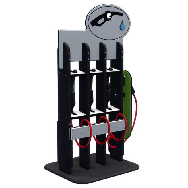 Die niedrigen Griffhöhen der eingehängten Zapfhahn-Simulationen und des simulierten E-Ladesteckers machen die Trafficcs-Tankstelle „Slim“ auch für kleine Kinder leicht bespielbar. Die abgerundeten Ecken sorgen auch bei regem Treiben für ein sicheres Spielen. Ideal für alle, die kleine Abenteuer an der frischen Luft suchen!