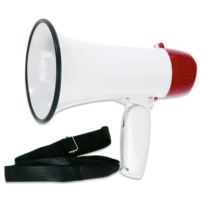 Ob im Sportunterricht, bei Führungen oder Veranstaltungen – mit dem handlichen Taschen-Megafon verschaffen Sie sich wirkungsvoll Gehör. Das 10-Watt-Megafon verfügt über eine Sirenenfunktion, ist mit einem bündelungsstarken Schalltrichter sowie einem abklappbaren Griff und einem Tragegurt ausgestattet.
