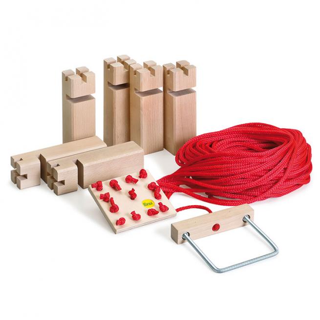 6 Hartholzklötze 1 Bügel zur Seilaufnahme