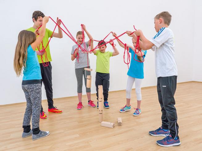 Der Turmbau gelingt, wenn alle mit Konzentration zusammenwirken. Die Schüler sprechen sich ab, beschreiben die Situation und beraten, was zu tun ist. So unterstützt die Kooperation gleichzeitig die Sprachentwicklung. Jedes einzelne Teammitglied ist wichtig. Das lässt Selbstbewusstsein und Zutrauen in die eigenen Fähigkeiten wachsen. Tolles Teamspiel für 2 – 12 Spielende.