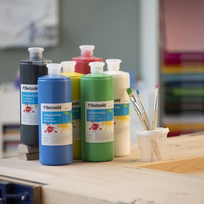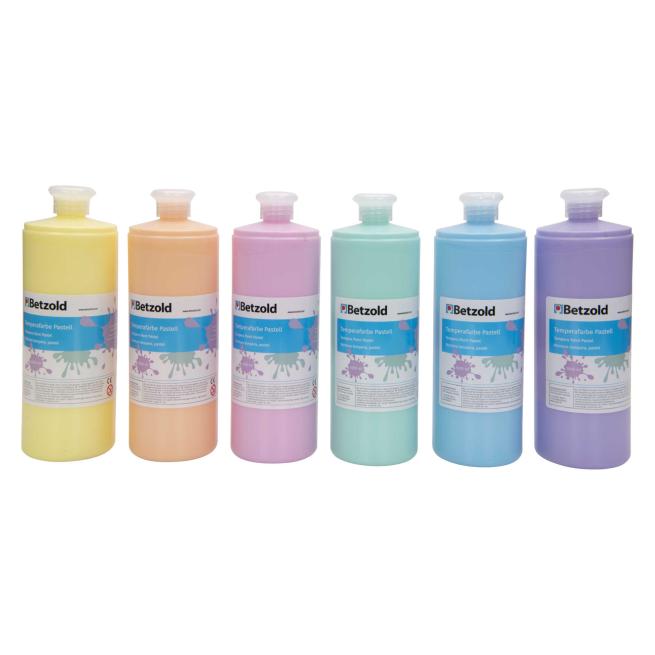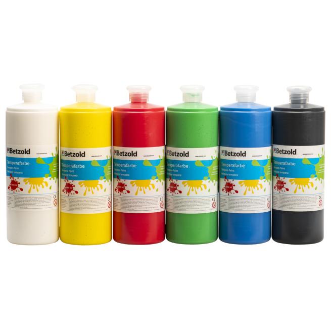 Starten Sie mit den Temperafarben im 6er-Set kreative Projekte im Kunstunterricht und in der Kita. Die Temperafarben decken zuverlässig, streichen geschmeidig und bleiben dank langsamer Trocknung gut bearbeitbar – ideal zum Übermalen, Mischen und für saubere Kanten. Sie mischen die sechs Töne mit Wasser oder untereinander zu vielen Nuancen und arbeiten auf Papier, Karton, Keilrahmen, Holz, Ton, Stoff und für Drucktechniken mit Pinsel oder Schwamm. Sie erhalten jeweils 1 Liter pro Farbe. Ab 3 Jahren.