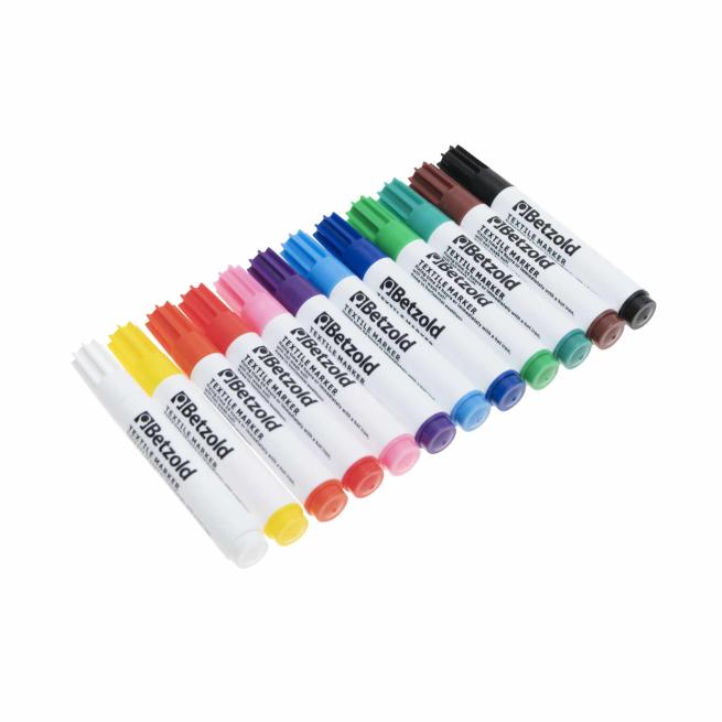 Mit den farbenfrohen Stoffmalstiften verzieren Sie Textilien schnell und kinderleicht. Im Handumdrehen entstehen individuelle Einzelstücke. Die 12 bunten Stifte liegen in der Hand wie Filzstifte. Farbintensiv und ergiebig. Trocknungszeit 24 Stunden. In 12 Farben sortiert.