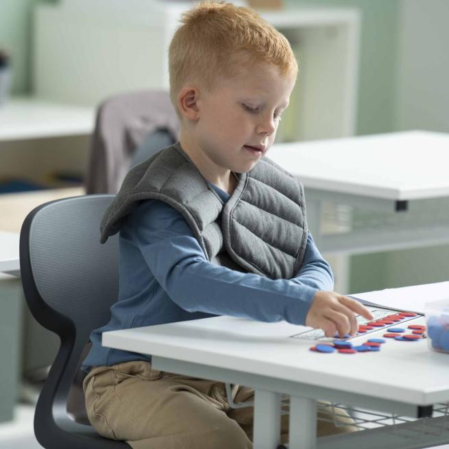 Nutzen Sie den therapeutischen Gewichtskragen sowohl für Ihr Klassenzimmer als auch für Ruheräume. So finden Ihre SuS in Lernphasen und bei der Stillarbeit den nötigen Fokus oder tanken in ihren Pausenzeiten entspannt neue Kraft.