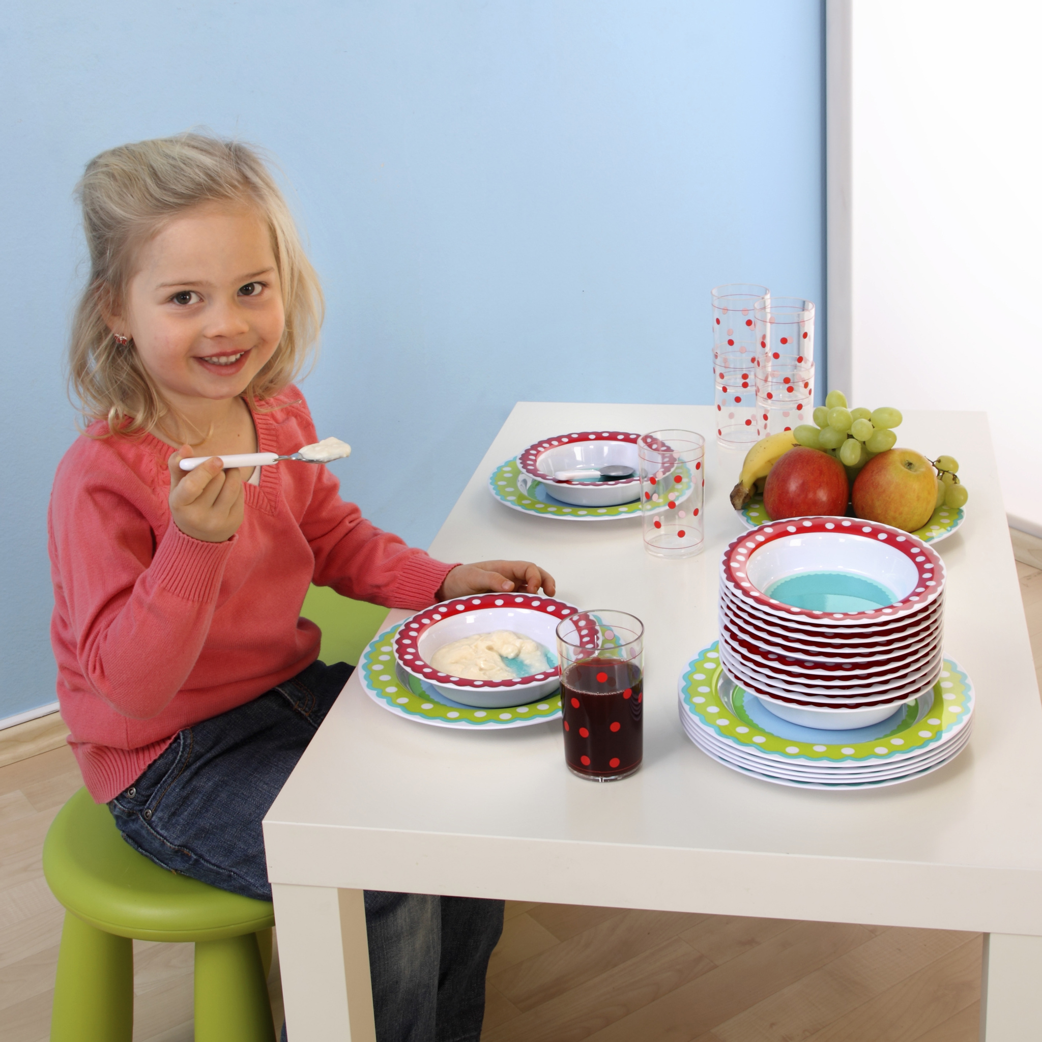 Ideal für den täglichen Einsatz am gemeinsamen Essenstisch. Das hübsche Design und die tollen Farben des Geschirrs wirken auf jedem Tisch einladend.