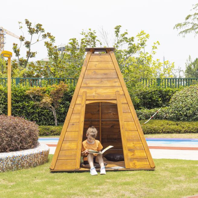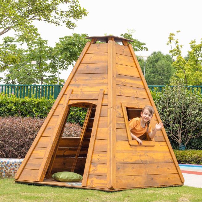Die Waldhütte im Zeltformat ist fantastisch zeitlos und die ideale Kulisse für die verschiedensten Rollenspielabenteuer. Mit ihrem Grundmaß von 161 x 161 cm bietet sie Platz für mehrere Kinder und exzellente Möglichkeiten für das Spielen in der Gruppe. Über den ebenerdigen, 70 cm breiten und 105 cm hohen Eingang ist die Hütte für Kinder leicht zu betreten. Für eine stets ausreichende Lichtdurchflutung im Innern sorgen zusätzlich die beiden seitlichen Fensteröffnungen mit ihrem Format von 42 x 42 cm sowie die oberlichtartigen Öffnungen an der Dachspitze.