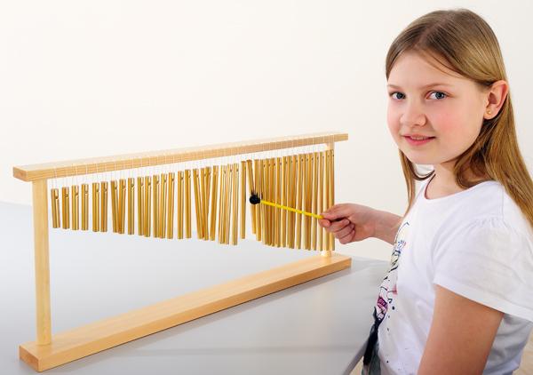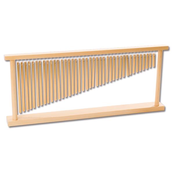 Handlich mit großem Sound – die Tisch-Chimes finden überall Platz und lassen sich kinderleicht spielen. Das Holz-Stativ sorgt dafür, dass die 40 Klangstäbe frei hängen und so den optimalen Klang abgeben. Um den typischen Chimes-Effekt zu erzeugen, nutzen Sie oder Ihre Schüler entweder den beigefügten Schlägel oder stoßen das Stativ an.