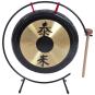 Handlicher Tisch-Gong – mit seinem Metall-Stativ ist das Tamtam schnell einsatzbereit. Seinen typischen Klang generiert der Gong aus den nachhallenden Obertönen, die auch über eine größere Distanz gut hörbar sind. Daher eignet sich das Tamtam bestens als Effektinstrument oder auch als Klassensignal.