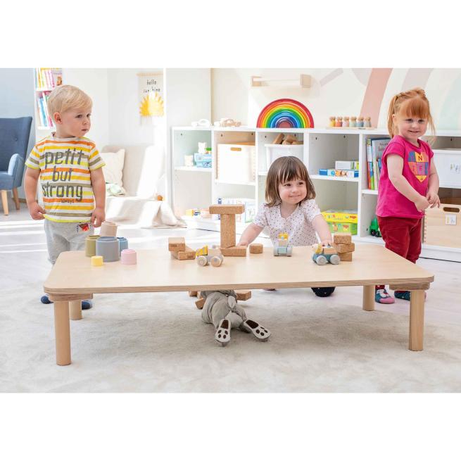 Speziell für Kinder U3 konzipiert. Diese Tischserie aus Birkenholz zeichnet sich durch ihre stark abgerundeten Ecken aus. Die Kleinen sind vor Stoßverletzungen geschützt und essen, sitzen oder spielen gern auch mal am Tisch. Die Tischplatte aus Birke-Multiplex ist dank beidseitiger Beschichtung besonders kratzfest. Stabilen Halt haben die Tische dank der Beine aus geöltem Birken-Massivholz. Zudem schützen die integrierten Gleiter Gehör und Boden. Nutzen Sie die wendbaren Gleiter je nach Boden entweder mit der Filz- oder Kunststoffseite. Kombinieren Sie die Tische nach Lust und Laune – die hellen Tischplattenfarben geben Ihrer Einrichtung einen frischen Look.