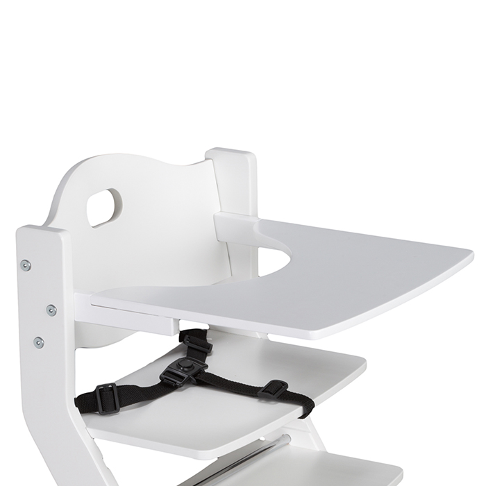 Passender Tisch in Buche natur zum ausgezeichneten Kinderhochstuhl tiSsi®. Die Tischplatte mit halbrunder Sitzöffnung fügen Sie einfach in die Aussparungen der Rückenlehne ein und befestigen sie mit den Schrauben. Nun kann das selbstständige Essenlernen oder auch das Malen beginnen.