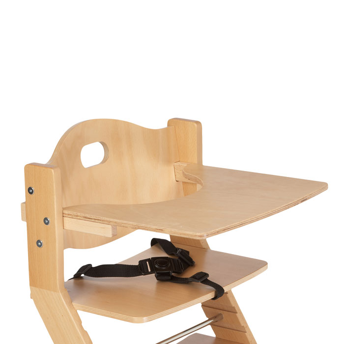 Passender Tisch in Buche natur zum ausgezeichneten Kinderhochstuhl tiSsi®. Die Tischplatte mit halbrunder Sitzöffnung fügen Sie einfach in die Aussparungen der Rückenlehne ein und befestigen sie mit den Schrauben. Nun kann das selbstständige Essenlernen oder auch das Malen beginnen.