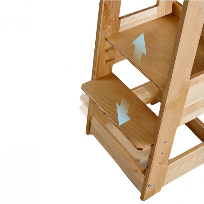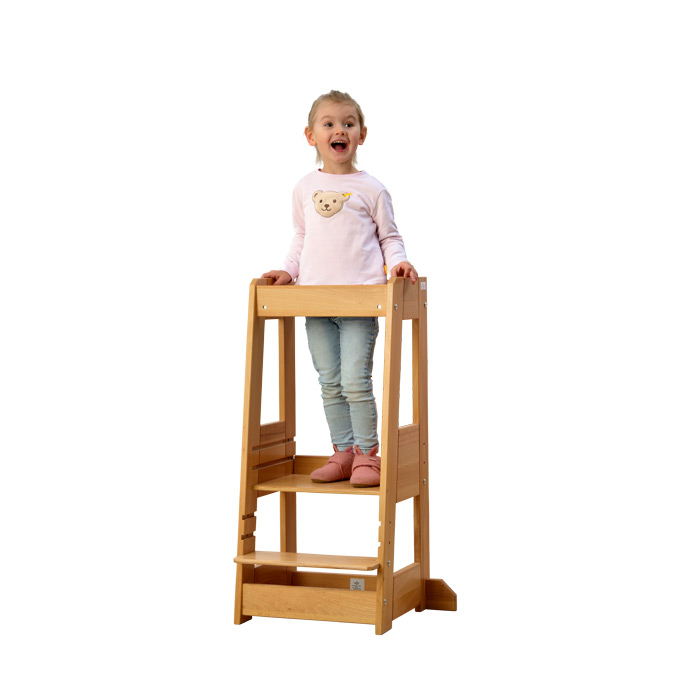 Mithelfen und immer dabei sein sind für Kinder zentrale Bedürfnisse. Wenn nur nicht immer alles so hoch wäre. Um leichter an den Tisch oder die Arbeitsplatte zu kommen, ist der Lernturm die optimale Lösung. Denn dank des Lernturms erlangt das Kind die richtige Höhe, zum Mithelfen und immer dabei sein. Das praktische, alltagserprobte Hilfsmittel bietet Kindern von 1 bis 4 Jahren besonders sicheren Stand bei optimaler Bewegungsfreiheit. Superpraktisch ist die dreistufige Höhenverstellung. So passt der Lernturm überall.