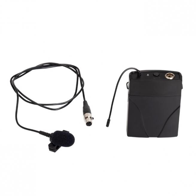 Dezentes Ansteck-Mikrofon. Einfach an den Kragen stecken und Ihr Vortrag oder die Moderation kann losgehen. Praktischerweise haben Sie immer die Hände frei. Der Taschensender ist enthalten und das Set ist kompatibel zur Verstärkerbox M100/M200.
