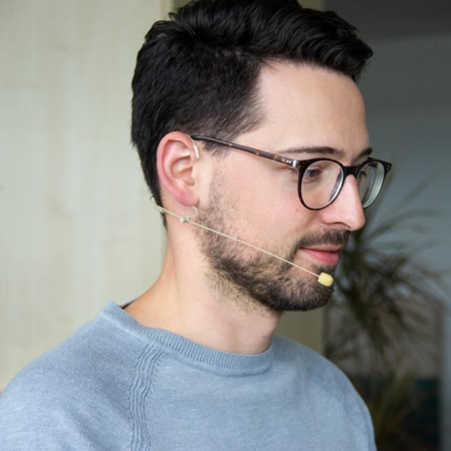 • unauffällig durch nudefarbenes Mikrofon und Bügel