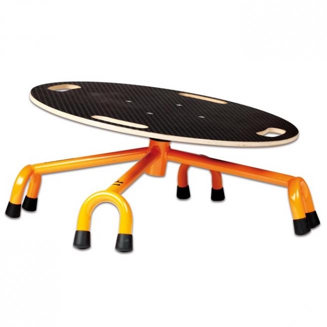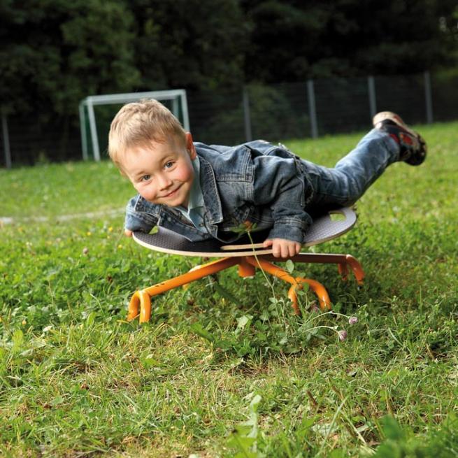 Sitzend oder liegend erleben Kinder Ihr Körpergefühl auf der Balancierscheibe. Dabei trainieren sie gleichzeitig Ihren Gleichgewichtssinn. Die maximale Neigung von 10° fordert die Koordinationsfähigkeit der Kinder. Zum Festhalten hat die Balancierscheibe 4 Aussparungen. Der rutschhemmende Belag hilft beim sicheren Positionieren. Sicheren Stand gibt die vierarmige Unterkonstruktion mit 8 gummierten Füßen.