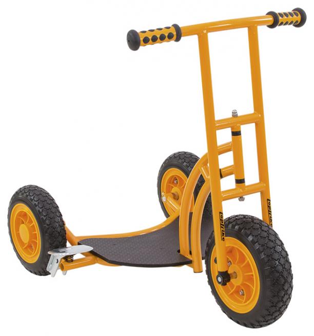 Dieser Roller sorgt für besonderen Fahrspaß, denn das breite, halbmondförmige Trittbrett mit Anti-Rutsch-Oberfläche und die drei Räder bieten einen festen Stand. Somit ist er auch ideal für den Einstieg ins Rollerfahren.